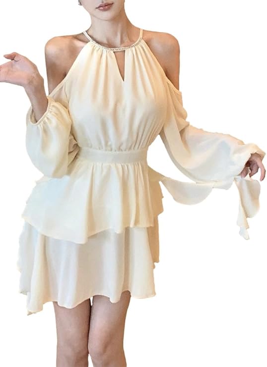 This party dress has puffy, wide sleeves and plenty of pleats for a girly and cute look. The shoulders are exposed just enough to accentuate the shoulder line. The loose long sleeves are also modern and cute. The tightly cinched waist area adds a silhouette and enhances your style. White gives a pure and soft impression, while black gives a simple and mature feeling. Both are recommended as basic colors that are easy to wear.