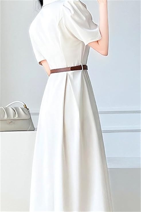 Made of comfortable polyester fabric, it has a soft touch. The plain design creates a chic and calm atmosphere. It is an elegant casual dress with a refreshing and refreshing feeling! Because it is a long dress with front buttons, it is neat and versatile to wear. Because it is an A-line, you don't have to worry about your body shape. Not only can it be worn daily, but also in the office, work, dating and other occasions.