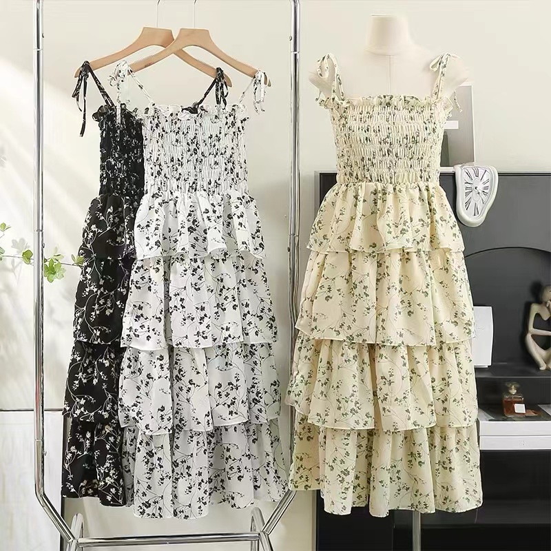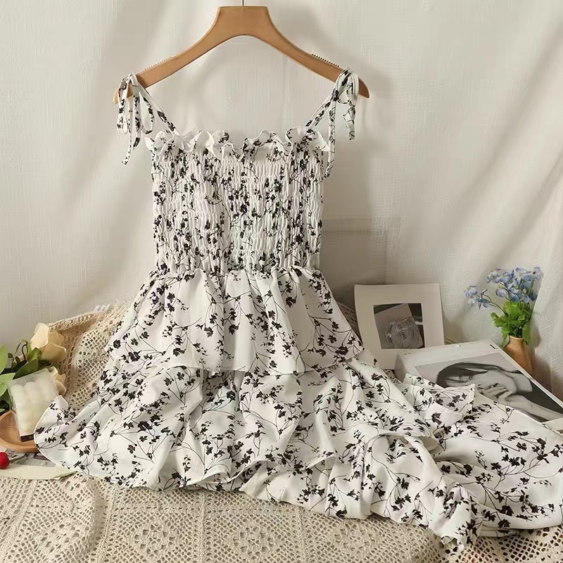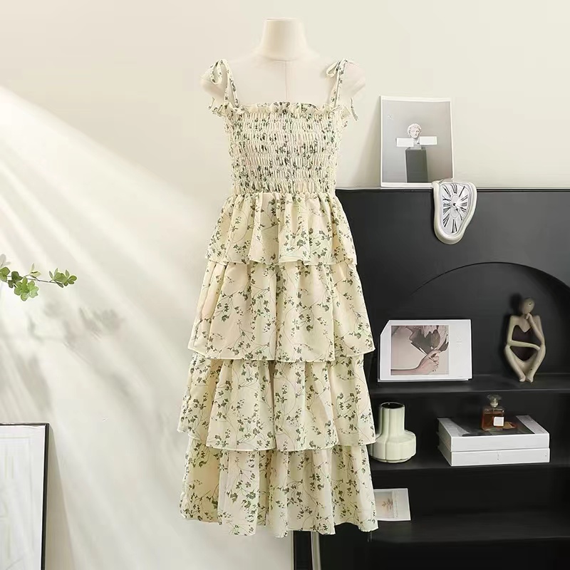 The soft and breathable material makes it comfortable to wear! The fabric is light and thin, so you won't feel hot in the summer. The childlike pattern design and fluffy hem increase the excitement of spring and summer. The natural waistline and long design make it very full to wear. The slightly stylish pleated and suspender design also make the arms look slimmer.
