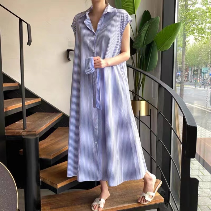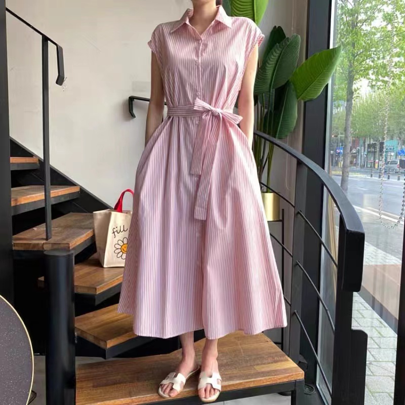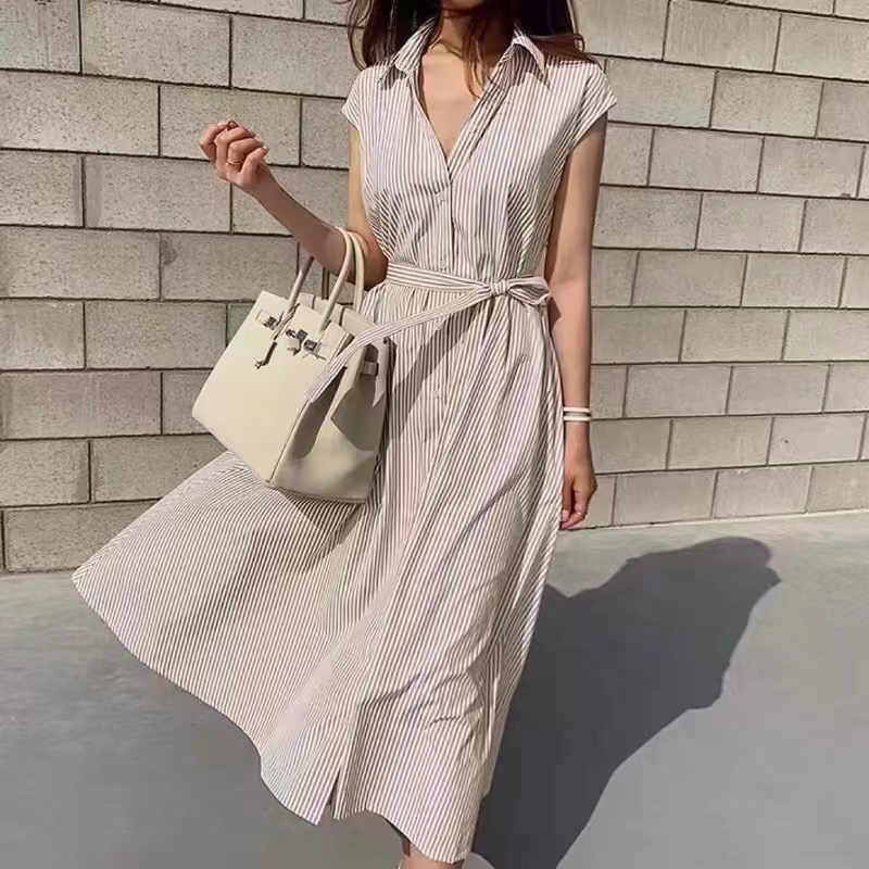 Use polyester material that is not easy to wrinkle. Decorated with buttons on the front. Easy to put on and take off, the overall beauty is not affected. The waist is equipped with a belt, which can be adjusted at will to achieve the effect of lifting the waistline. There are pockets on both sides, which are convenient for storing small items and are very practical. With a slightly cool lining, it is very comfortable to wear without worrying about see-through. The length below the knee makes the legs look luxurious.