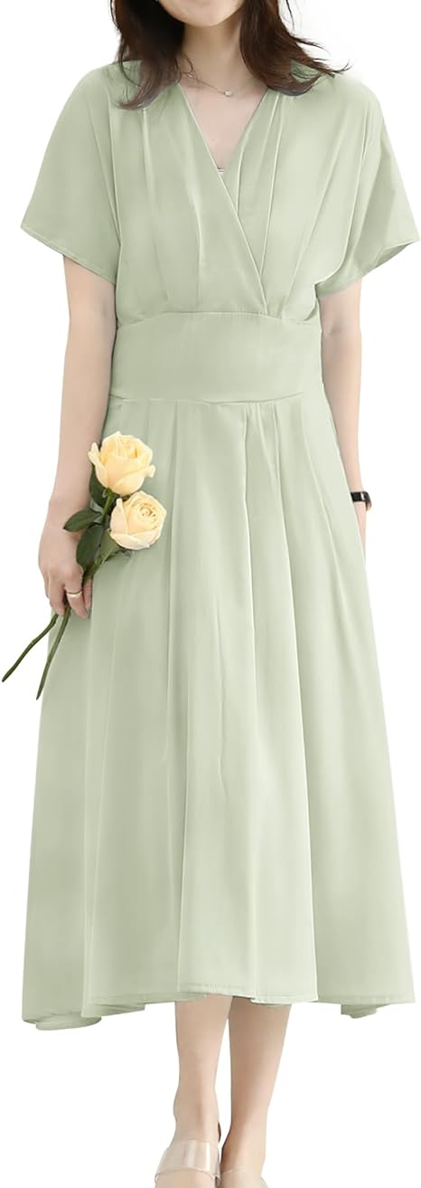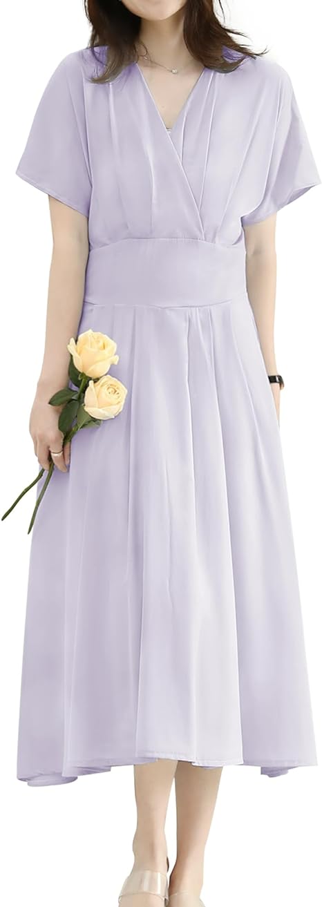 The polyester material is light and breathable, making it comfortable to wear. This short-sleeved dress feels soft and refreshing on the skin, and you can spend the summer in a refreshing way. The drapey fabric creates a sense of luxury with natural folds. It is lined, so you can wear it with confidence. Note: The side zipper makes it easy to put on and take off.